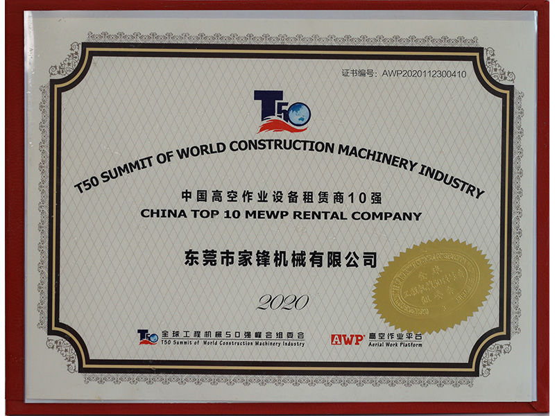 東莞市家鋒機械有限公司成立于2016年,是專業的高空作業平臺租賃、銷售服務商,擁有徐工、中聯、吉尼、捷爾杰等國內外知名品牌的高空作業設備八千多臺,連續四屆榮膺“中國高空作業設備租賃商十強企業”及“中國高空作業平臺租賃業十大品牌”,并于2021年首次榮膺“中國工程機械租賃商十強”,是立足華南、輻射全國、規模大、服務優,極具競爭力和影響力的企業。短短幾年,已相繼與世界機械巨頭徐工集團、中聯重科達成戰略合作。
